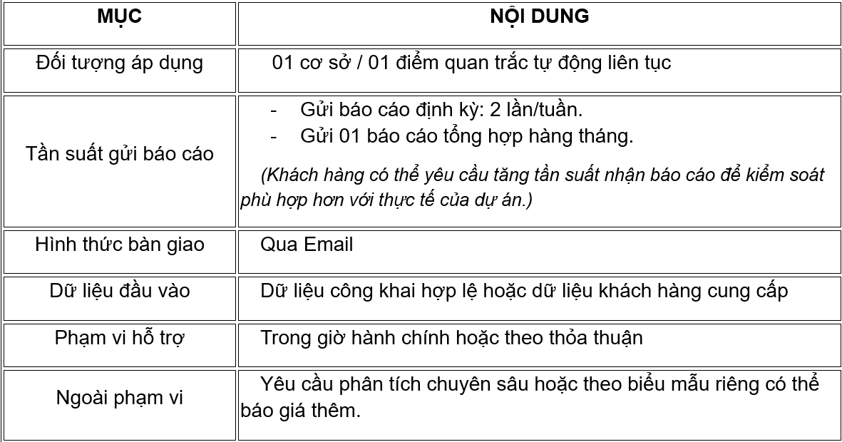 Dịch vụ phân tích dữ liệu môi trường từ Hệ thống quan trắc tự động liên tục